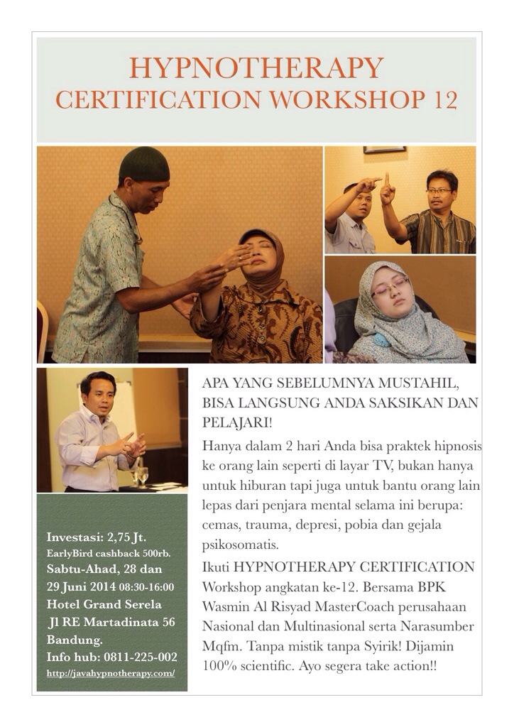 Ikuti HYPNOTHERAPY CERTIFICATION Workshop angkatan ke-12.