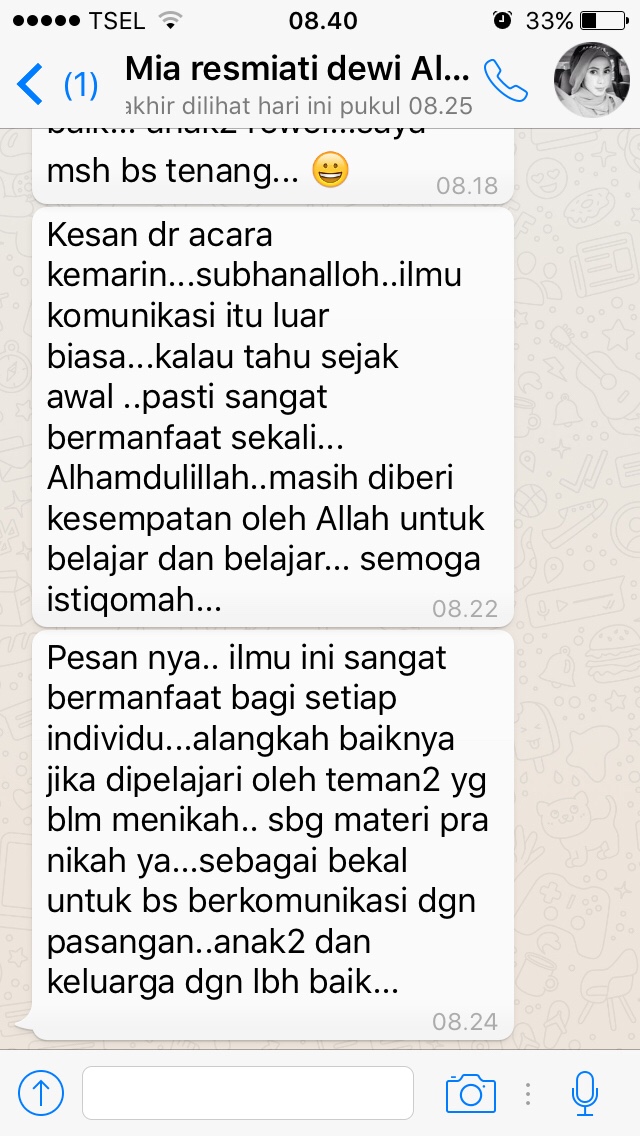 “Masyaallah ilmunya sangat berguna sekali dalam menyelesaikan masalah2 komunikasi”